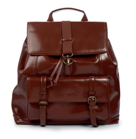 Adjustable shoulder straps. Crafted from man-made leather with expertly placed pockets. Waterproof. Large enough to carry a laptop.