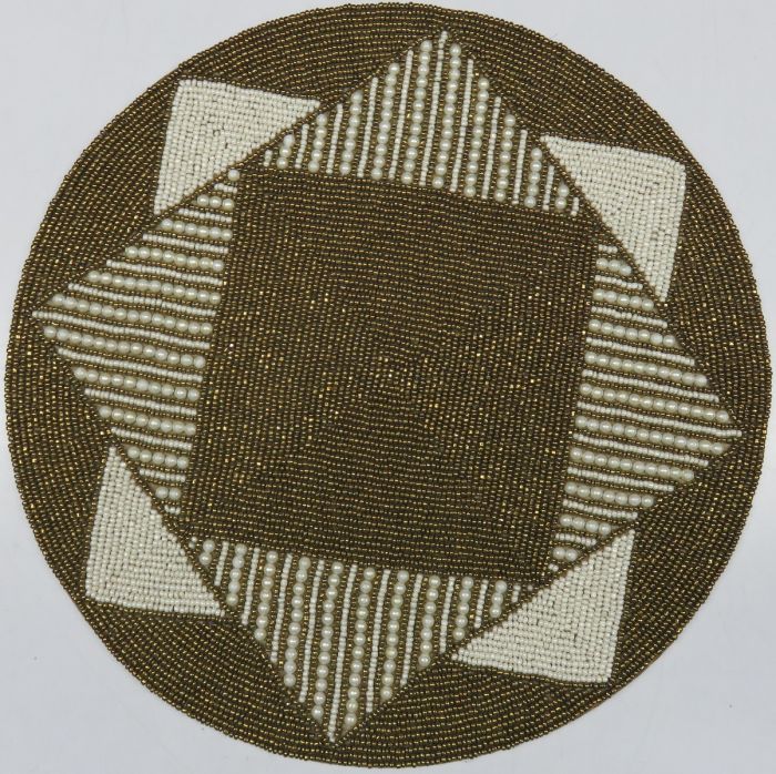 15" Multi Square Placemat made of top glass beads and back satin fabric.