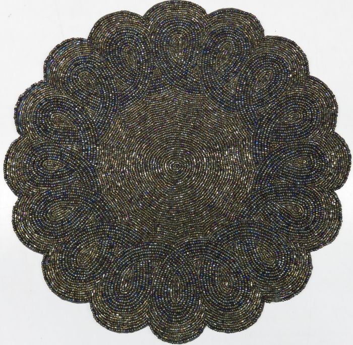 15" Scallop placemat made of top glass beads and back satin fabric.